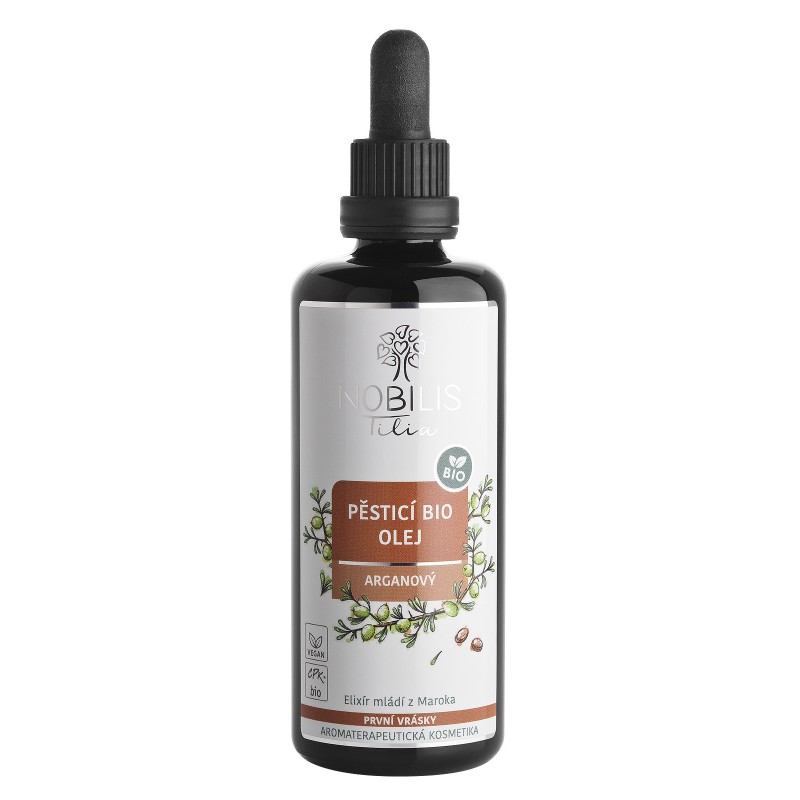 Olej obsahuje vysoké percento vitamínu E - alfa tokoferolu, preto je výnimočne schopným pomocníkom v ochrane pleti proti poškodeniu voľnými kyslíkovými radikály.Významný je tiež obsah nenasýtených mastných kyselín, karoténov a fytosterolov. Arganový olej má silné regeneračné a zvláčňujúce účinky a spoľahlivo obnovuje vitalitu suché, vysušené, citlivé, poškodené alebo predčasne zrelej pleti. Je vhodný ako jemný prostriedok na ošetrenie očného okolia, môže sa používať ako pestujúci nočný olej alebo ako podklad pod denný krém. Pre zvýšenie bioaktivity dodávame arganový olej vo fialovom skle. Vôňa arganového oleja pripomína plesňový syr a niekomu nemusí byť príjemná. V tom prípade ho odporúčame zmiešať s šípkovým či makadamiovým olejom, najmä pri použití na tvár.